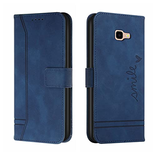 XFDSFDL® Cas de pour Samsung Galaxy J4+ SM-J415 (6,0 Pouces) PU Cuir Housse Flip Coque Le Sourire Rétro Motif avec Built Stand Magnétique Fermeture Portefeuille Étui de Protection Bleu