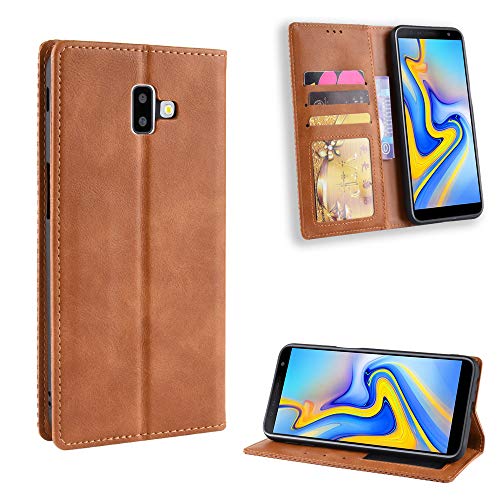 QiongniAN Coque pour Samsung Galaxy J6+ Housse de Protection,Coque pour Samsung SM-J610G/DS Galaxy J6+ 2018 / SM-J610F/DS SM-J610FN/DS SM-J610G / Galaxy J6 Prime Étui à Rabat en Cuir PU Case Brown