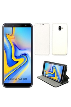 Etui Luxe Samsung Galaxy J6 Plus 2018 Blanc Slim Cuir Style Stand - Housse Coque Anti Choc De Protection Samsung Galaxy J6+ 2018 Smartphone 2018 /