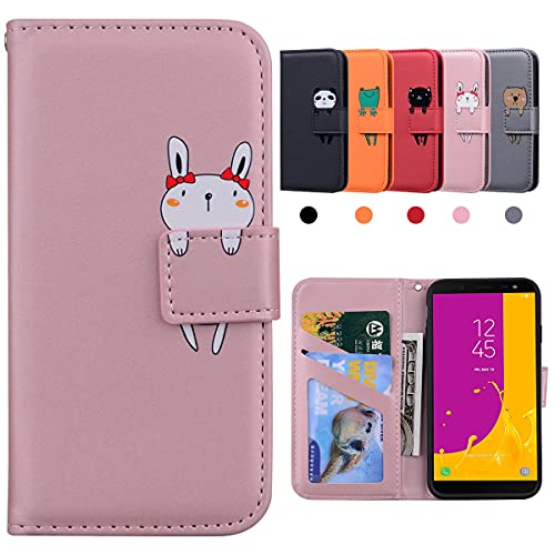 Etui Samsung J6 2018, Samsung Flip Coque pour Samsung Galaxy J6, Antichoc TPU Housse Protection Galaxy J6, Portefeuille [Béquille][Fentes pour Cartes] Coque Samsung J6 2018 - Rose