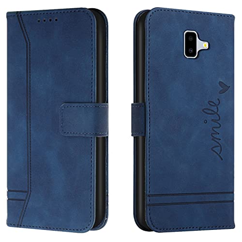 LiLuLa Coque pour Samsung Galaxy J6 2018, Coque Samsung J6 2018, PU Etui Housse en Cuir Portefeuille de Protection Fonction Stand Porte Carte Flip Magnétique Case Etui Galaxy J6 2018 (Bleu)