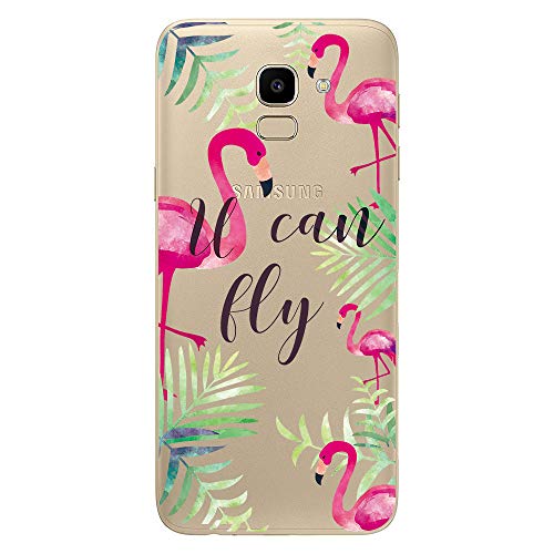 NOVAGO Coque Galaxy J6 2018 J600 en Gel Souple Transparent et Résistant Anti Choc avec Impression de qualité pour Samsung J6 2018 (1 Coque, Flamant Rose 2)