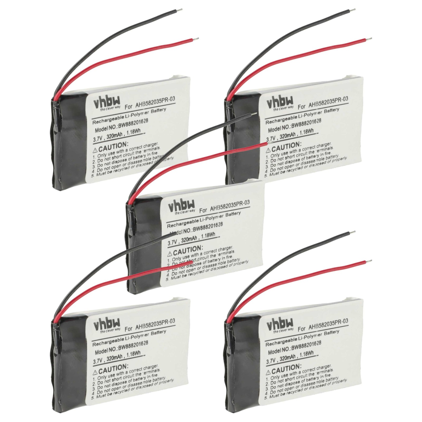 vhbw 5x Batterie compatible avec Jabra Speak 510 poste mains-libres, téléphone de conférence (320mAh, 3,7V, Li-polymère)