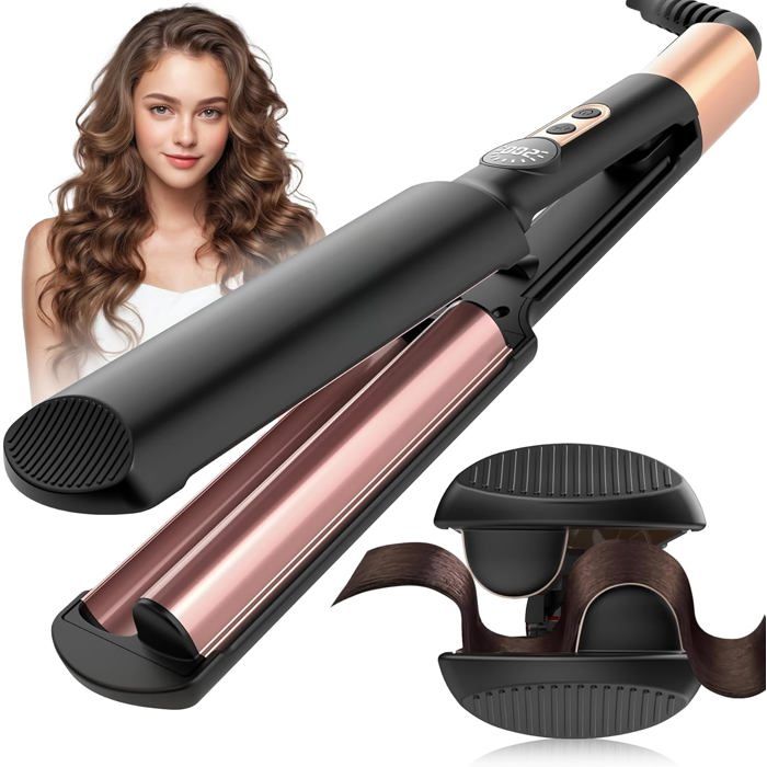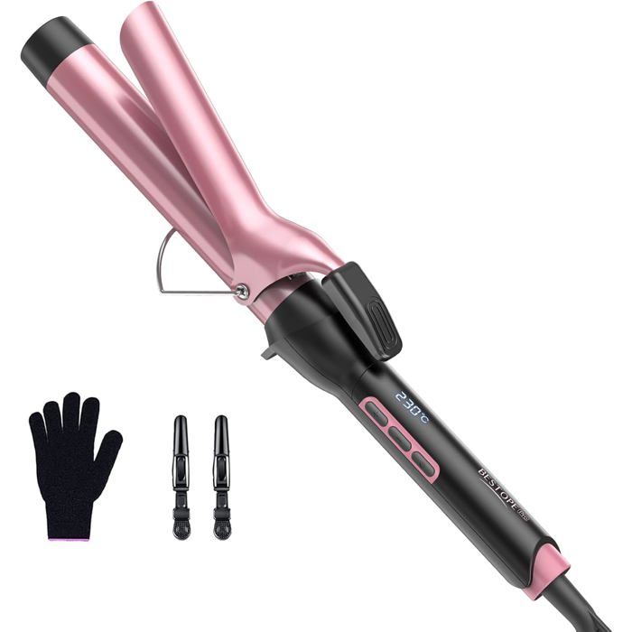 Boucleur À Cheveux 2 Tete Fer À Friser 32 Mm Grandes Boucles Hair Curler Style Ondulé Avec 4 Températures Réglables