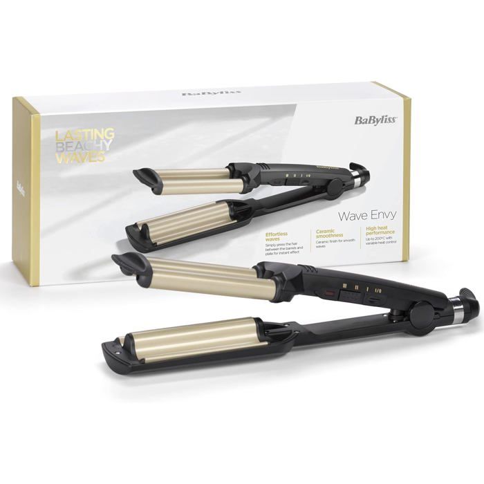 Easy Waves - Effet Wavy Revêtement Titane-Céramique 3 Réglages De Température Embouts Thermorésistants Doré & Noir C260E[F85]