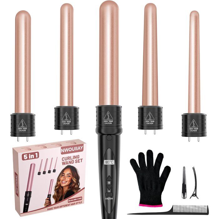 Boucleur A Cheveux 5 En 1 Fer À Boucler Interchangeable Céramique Fer À Friser Avec Température Réglable Friseur Cheveux