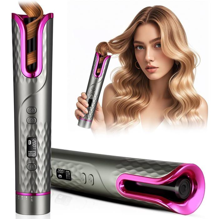 Fer À Friser Automatique Sans Fil Boucleur À Cheveux Rechargeable Usb Bigoudi Anti-Brûlures Avec Minuterie Fer À Boucler