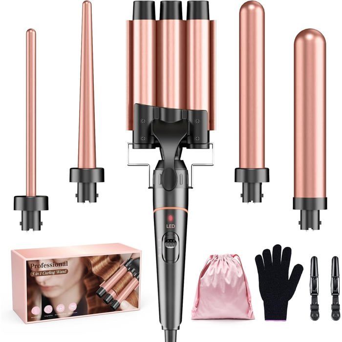 Fer À Boucler 5 En 1 Avec 3 Barils Fer À Boucler Avec Revêtement En Céramique Réglable En Température Fer À Boucler Pour