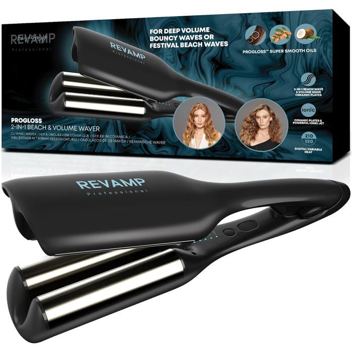 2-En-1 Beach & Volume Waver – Boucleur À Cheveux Wavy Avec Fer À Boucler En Céramique Et Huiles Progloss Appareil Wavy [F316]