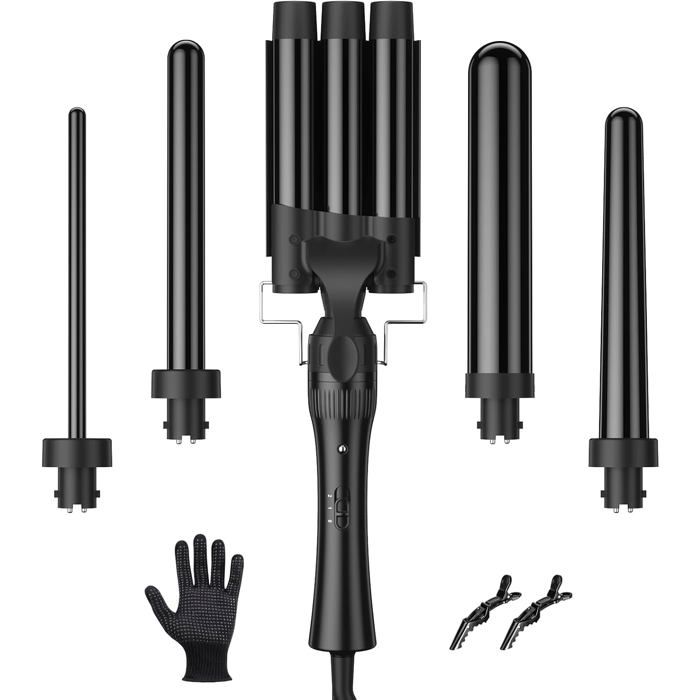Fer À Boucler 5 En 1 – 3 Barils Céramique Pour Boucles Et Ondulations Chauffe Rapide 2 Températures Gant Et 2 Pinces Inclus[F58]
