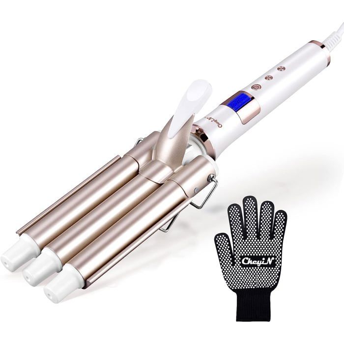 Fer À Boucler 3 Barils Fer À Onduler Céramique Boucleur 3 Tête Coiffage Des Cheveux Bouclés Avec Ecran Lcd Température