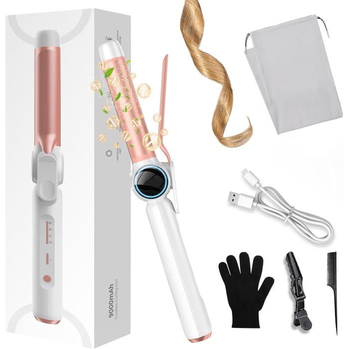 Boucleur Sans Fil Fer À Boucler 9000 Mah 28 Mm Boucleur A Cheveux Rechargeables Usb Fer À Friser Portable Friseur Cheveux[F187]