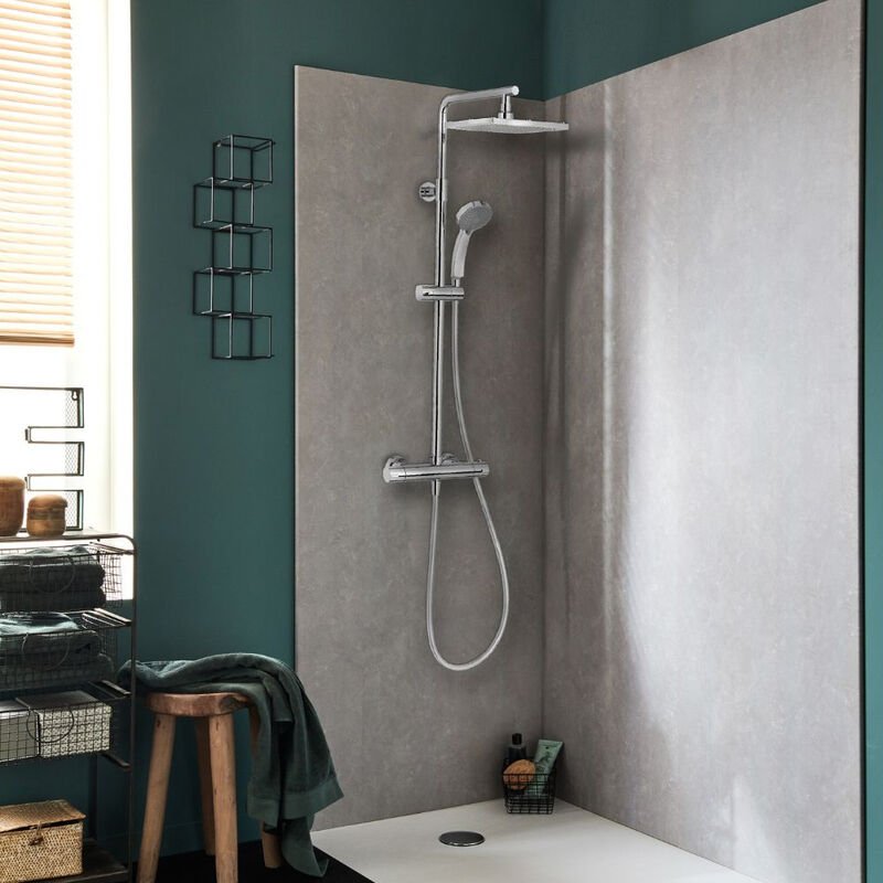 Colonne de douche thermostatique Jacob Delafon Brigitte - Pomme XXL 28cm - Douchette 2 jets - Chrome