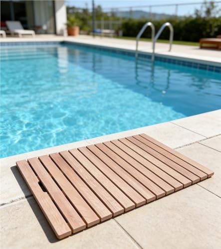 Générique Tapis de Sol antidérapants en Bois pour Piscine, Tapis de Douche en Teck pour intérieur et extérieur, Tapis de Bain en Bois pour Salle de Bain, Baignoire, Jacuzzi, Spa, Sauna, Jard