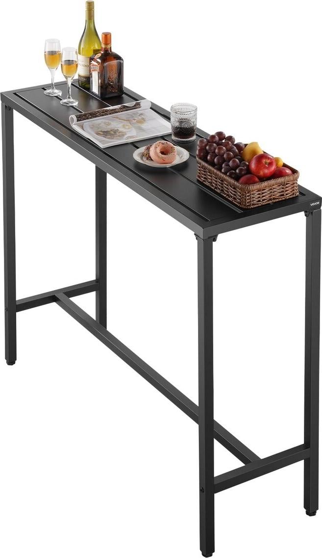 Table de bar d'extérieur, 120 x 37,5 cm Table de bar de patio, plateau imperméable et structure métallique robuste, tables de salle à manger rectangulaires de hauteur comptoir, mobilier d'extérieur pour balcon, jardin, jacuzzi, bord de piscine, intérieur