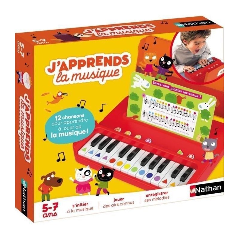 Nathan – J'apprends la Musique – Jeu éducatif - Jouet Piano pour Enfant – 12 mélodies pour Apprendre la Musique – Dès 5 Ans