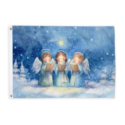Drapeaux anges pour extérieur, livres festifs de Noël, bannière décorative d'extérieur avec œillets pour porche, jardin, balcon, maison - 0,9 x 1,5 m