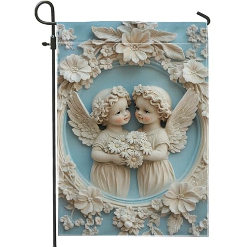 Drapeau de jardin avec deux anges avec ailes - 30 x 45 cm - Vertical double face - Décoration extérieure de ferme
