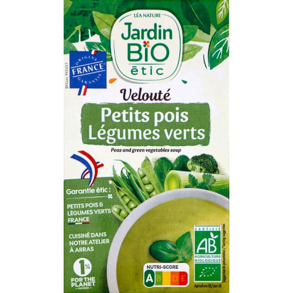 Jardin bio / veloute petits pois legumes verts bio* 1l/tetrapack