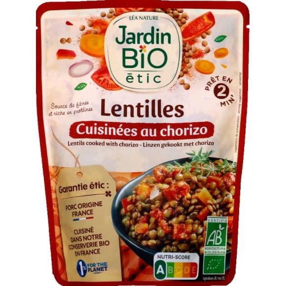 Jardin bio/ lentilles cuisinees au chorizo bio* 250 gr/ doypack