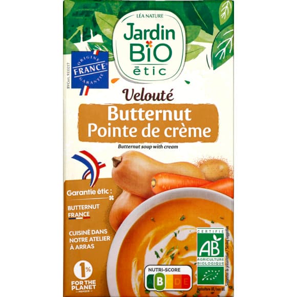 Jardin bio / veloute butternut pointe de creme bio* 1 l / tetrapack