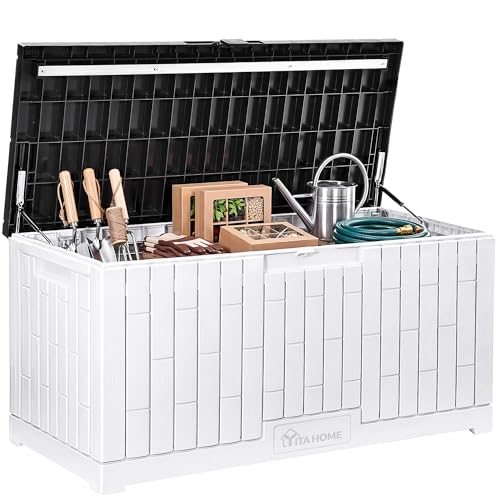 YITAHOME Coffre de Rangement Extérieure de 450L, Grand Rangement pour Oreillers Extérieurs, Outils de Jardin et Fournitures de Piscine, étanche, Verrouillable (Noir et Blanc) FTPLDB-0021 Large