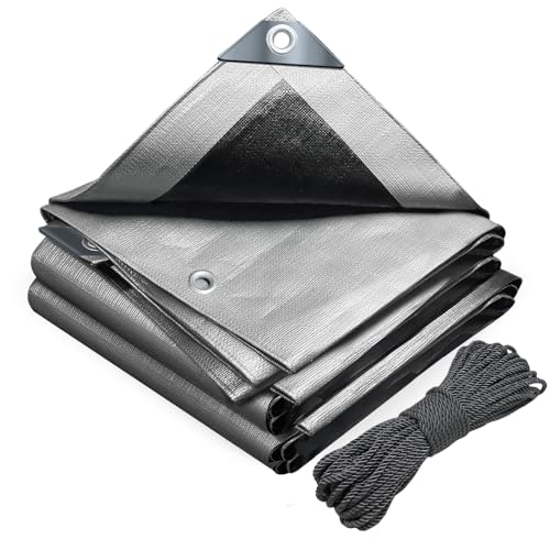 VOUNOT® Bâche de Protection en Polyéthylène 180g/m² Bâche Imperméable Ultra Lourde et Résistante Revêtue des Deux côtés avec Oeillets en Aluminium Couverture Étanche pour Jardin et Piscine Gris 6x8m