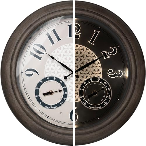 PRESENTIME & Co. Horloge Murale Lumineuse pour extérieur, étanche, décoration de Maison Vintage et élégante pour Jardin, terrasse et Piscine, avec thermomètre et hygromètre, Grande Taille, 45,6 cm