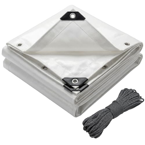 VOUNOT® Bâche de Protection en Polyéthylène 180g/m² Bâche Imperméable Ultra Lourde et Résistante Revêtue des Deux côtés avec Oeillets en Aluminium Couverture Étanche pour Jardin et Piscine Blanc 6x8m