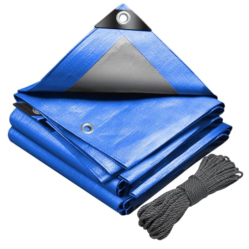 VOUNOT® Bâche de Protection en Polyéthylène 180g/m² Bâche Imperméable Ultra Lourde et Résistante Revêtue des Deux côtés avec Oeillets en Aluminium Couverture Étanche pour Jardin et Piscine Bleu 4x6m