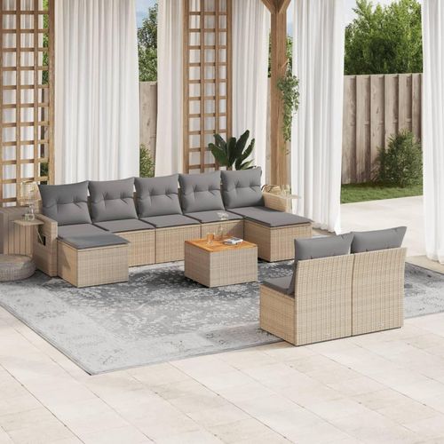 Salon de jardin avec coussins 10 pcs beige resine tressee