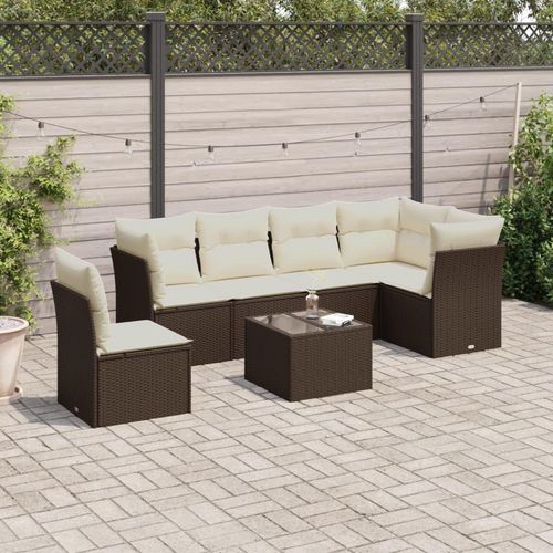 Salon de jardin avec coussins 7 pcs marron resine tressee
