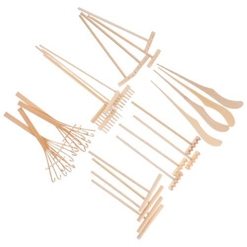 TOGEVAL Mini Kit de Râteaux de Jardin Zen 24 Pièces en Bois Naturel Accessoires pour Jardin Zen Miniature et Sable Décoratif Outils Manuels pour Bureau et Contemplation Ensemble