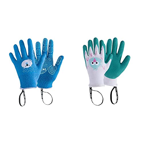 ROSTAING PROSPER-IT3-6 Gants, Turquoise, 21.3x10.5x2 cm & Gants de Jardinage Enfant ANABEL - Paire de Gants de Jardinage et Bricolage - Pour les Petites Mains Délicates et la Sécurité de vos Enfants
