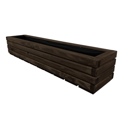 HolzGarden Jardinière en Bois avec Non-tissé 118x20x25 cm Imprégné Couleur ÉbènePot de Fleurs Jardin, Balcon, Terrasse Résistant aux Intempéries Bois Massif Jardiniere Exterieur Grande Taille 32L