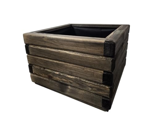 HolzGarden Jardinière en Bois avec Non-tissé 40x30x40 cm Imprégné Couleur ÉbènePot de Fleurs Jardin, Balcon, Terrasse Résistant aux Intempéries Bois Massif Jardiniere Exterieur Grande Taille 29L