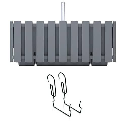 Jardinière de Balcon en polyrotin avec Supports de Suspension 47 x 17 x 15 cm 3 Inserts en Plastique Gris