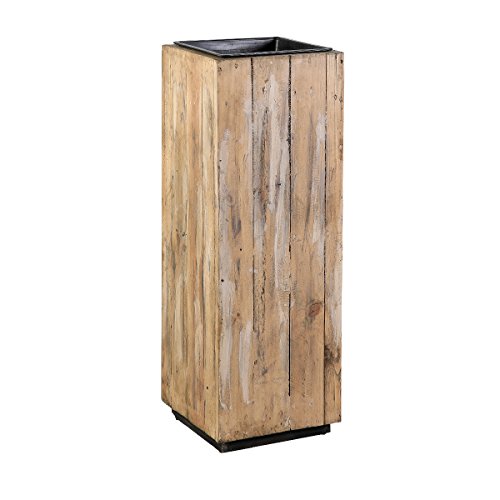 greemotion Jardinière Carrée en Bois Recyclé, Pot de Plantes Haut en Bois FSC 100%, Avec Insert en Plastique Noir, Jardinière Haute Décorative, env. 43,5 x 115 x 43,5 cm, Couleur de Bois Naturel