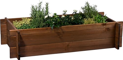 dobar® Jardinière surélevée en Bois Massif - Système d'emboîtement - Taille M - Empilable - Jardinière avec Film pour Plantes - 117 x 58,5 x 27,5 cm - Marron foncé