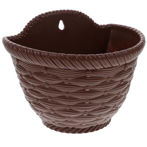 CLISPEED Jardinière Suspendue Murale en Plastique Tressé pour Plantes Succulentes, Pot Suspendu Demi-Cercle Grand Format Couleur Café, Support Mural Décoratif pour Balcon et Jardin