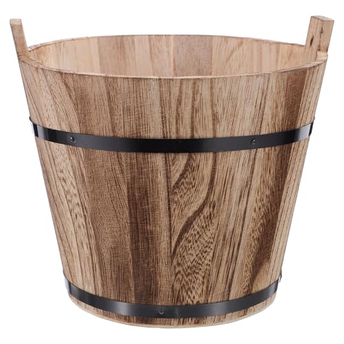 UTHCLO Jardinière Bois Extérieur Stable Bords Arrondis pour Succulentes et Plantes, Design Rétro Élégant de Baril, pour Jardinage et Bureau