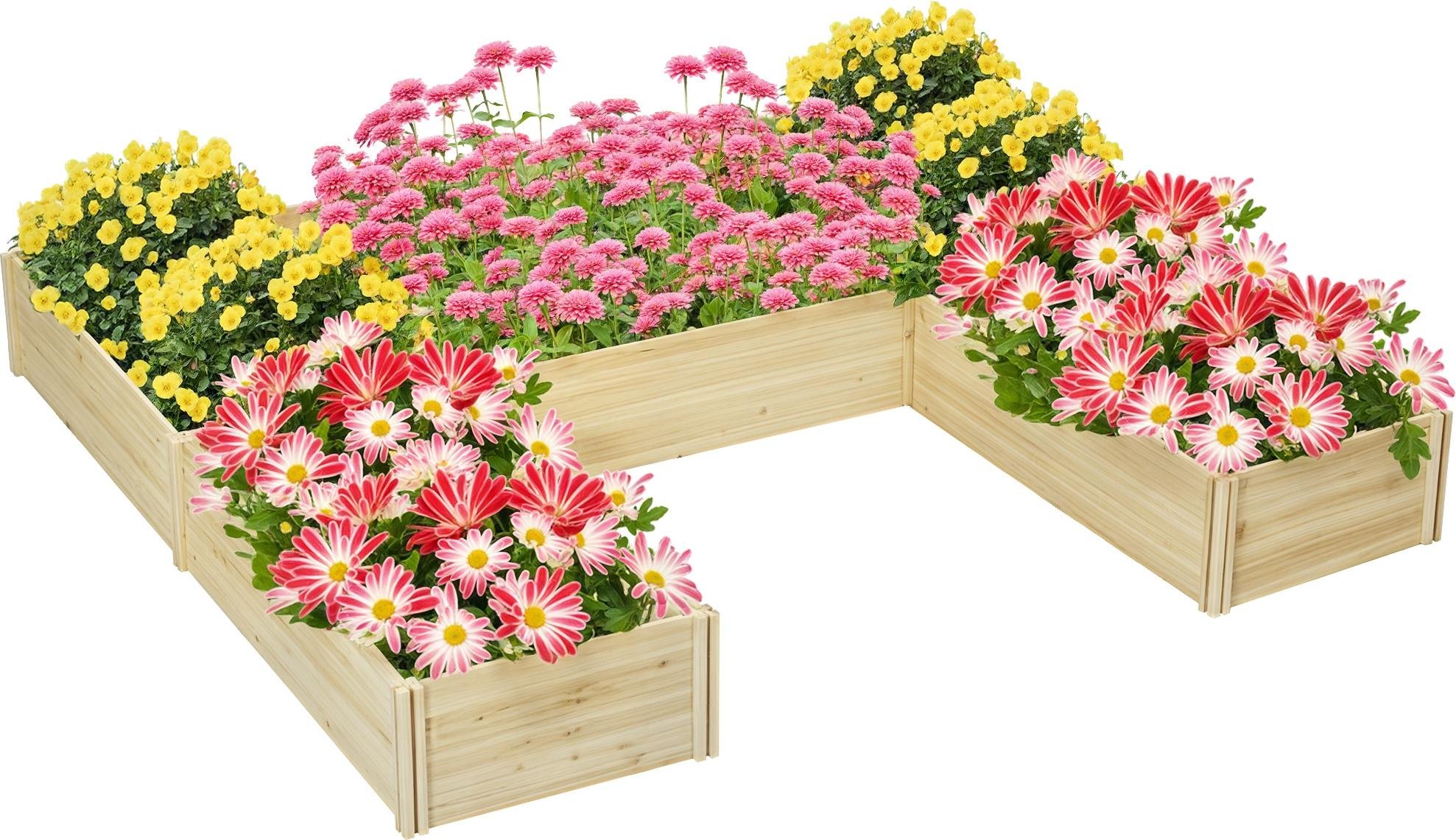 Outsunny Lot de 5 jardinières Jardinières convertibles Jardinière d'extérieur en bois pré-huilé, Dim. 230L x 230l x 28H cm Bois naturel