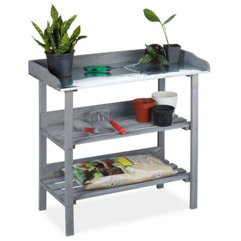 Higsose Jardinière avec Etagère Gris 111,5x54x81 cm Bois Massif de Pin Jardiniere sur Pieds Jardiniere Bois Jardiniere Interieur Jardiniere Haute Jardinieres Exterieur Bois Jardiniere Balcon
