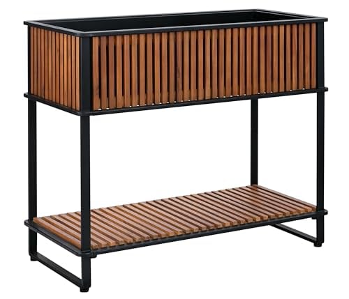 Walmeck Insert de Jardinière à Hauteur Réglable en Acier au Carbone de qualité Supérieure, Remplissage Jardinière Réglable pour Pots Hauts Intérieurs et Extérieurs avec 3 Planches en (Version Courte)