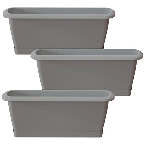 WELLHOME 3 x Jardinière Respan avec Support en Plastique de Couleur Grise Pierre 78,6 (Longueur) x 18,4 (Largeur) x 14,5 (Hauteur) cm