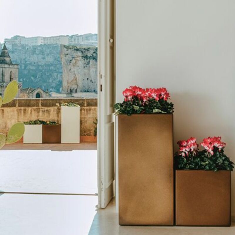 Monacis - Jardinière angulaire en résine 80X80X35 cm mod. Flowerpot Angulaire Marron
