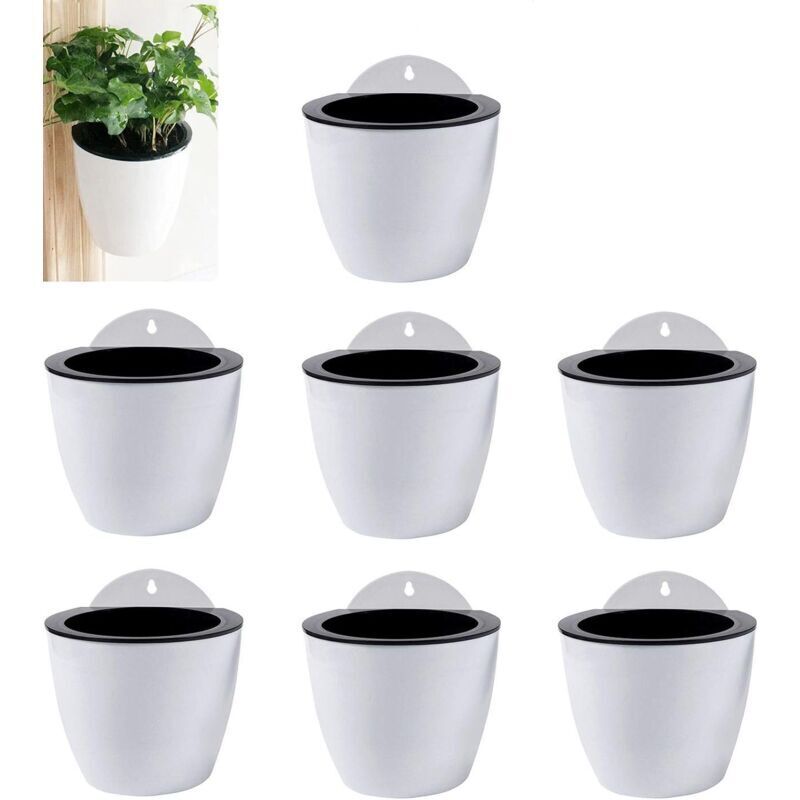 Lot de 7 jardinières suspendues en plastique blanc, à arrosage automatique, à double niveau, pour une utilisation intérieure et extérieure,