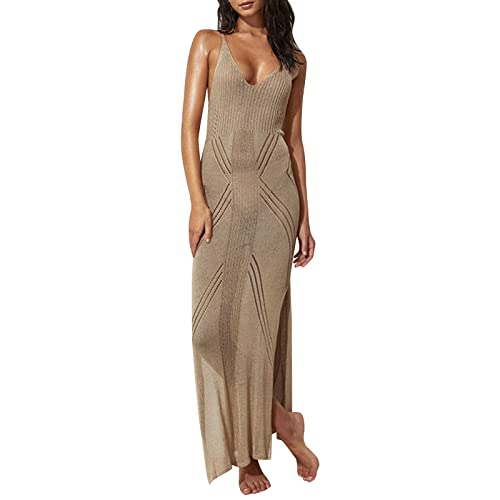 Générique Tenue De Plage Femme éTé Sexy,Robe De Plage Jarretelle Tricoté Bikini Couvrir Vacances Longue Robe Maillots De Bain Robe (Khaki, One Size)