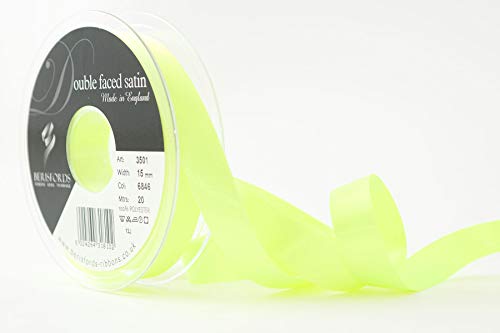 Berisfords Ruban de satin double-face en polyester 15 mm, Jaune fluo