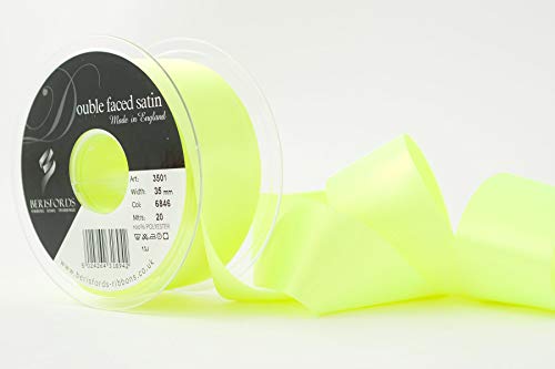 Berisfords Ruban de satin double-face en polyester 35 mm, Jaune fluo